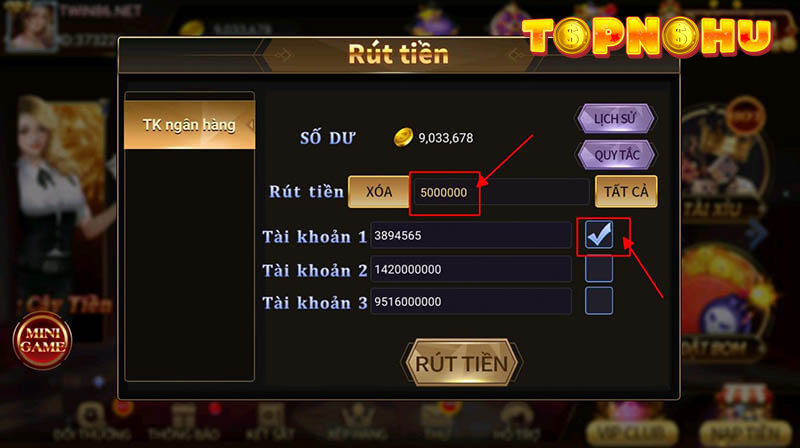 Bước 3: Hoàn tất giao dịch rút thưởng game Nổ hũ đơn giản